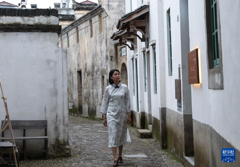 4月19日,在江西景德镇,蔡文娟在“青花故事”创作基地内。