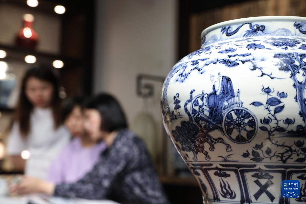 作为一名省级非遗传承人,蔡文娟不仅不断深研传统非遗技艺,还成为了一名创业者。她组建团队成立文创品牌,创新设计,让传统的青花元素衍生跨界;通过收集古陶瓷借鉴纹样,结合新的载体,设计出符合当代审美的青花产品。“景德镇传统陶瓷文化既需要代代守护,也需要与时俱进,这样才能让景德镇传统陶瓷文化在新时代焕发出新光彩。”